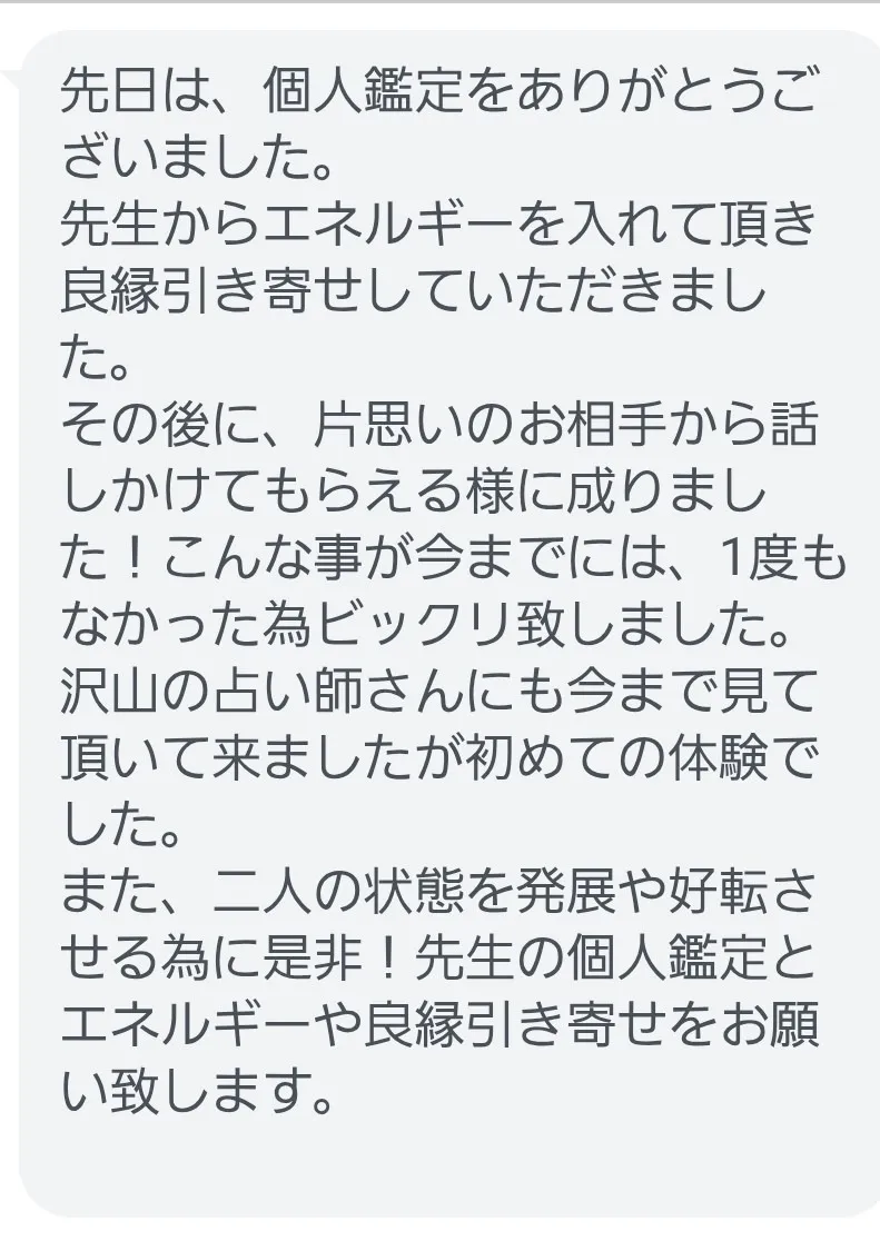 個人鑑定での良縁引き寄せセットメニュー購入の方からの嬉しい報告